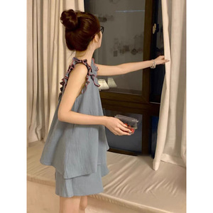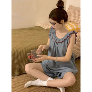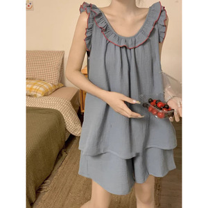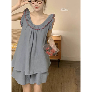 女性用クロスボーダーパジャマ、夏用薄手の大きいサイズの無地ベストスーツ、フレンチレースのホーム服、夏の新しいスタイル、屋外で着用可能