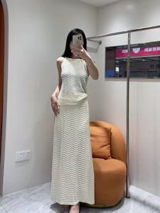 3140 フレンチセレブスタイルニットスーツスカートレディース夏新作ノースリーブホルターネックトップヒップカバースカート2点セット