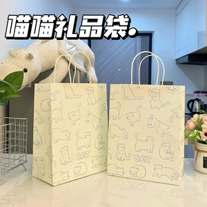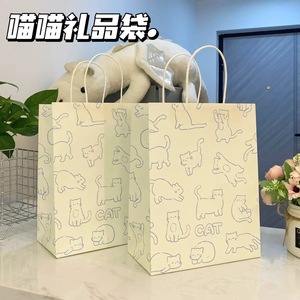 ins 高見えかわいいスケッチ子猫ギフトバッグギフト包装袋クラフト紙バッグお土産ハイエンド漫画