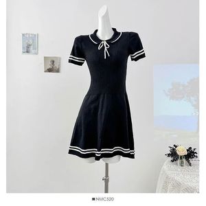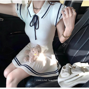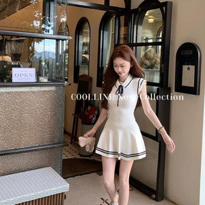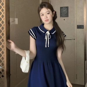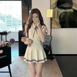 韓国の甘い年齢を減らすカレッジスタイルの小さなフライングスリーブニットレースアップドレスカジュアル多用途スリムスカート夏の新しいスタイル