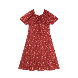 Shuangtian 2025 新しい夏のドレスファットシスター大きいサイズ花柄レースアップウエストドレス 9008