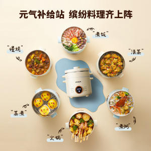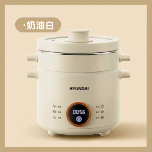 HYUNDAI多功能迷你电煮锅 热销电饭煲小型煲汤锅2L【不锈钢蒸笼】
