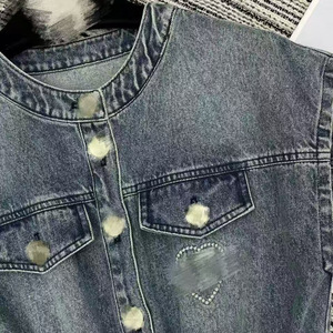 [Nanyou Rose 高級婦人服] 25 新しい気質ウォッシュ刺繍弾性ウエストフライングスリーブデニムドレス