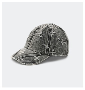 SMFK クロスフラワー野球帽 刺繍文字 デニム カジュアル スポーツ 調節可能なサンシェード カーブブリム ダックタンハット