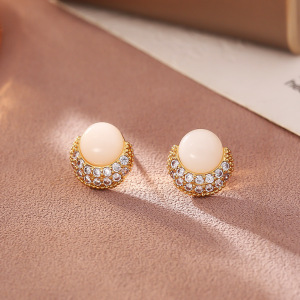 白色微镶锆石耳钉(加厚真金保色)