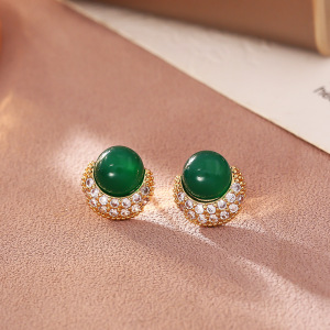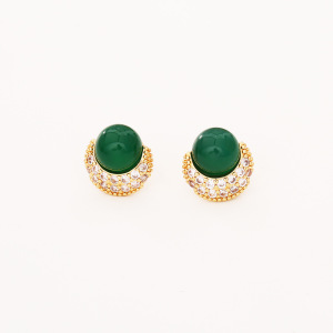 绿色微镶锆石耳钉(加厚真金保色)