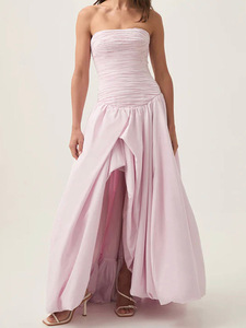 Nanyou 25 新しい夏のスタイル不規則なプリーツチューブトップドレス女性のデザインライト高級優しいスタイルのドレスロングスカート