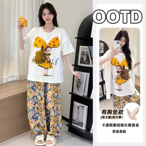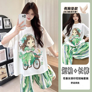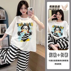 メーカー在庫あり胸パッド付き大きいサイズパジャマ女性用春と夏の半袖ズボン漫画少女かわいいホーム服セット