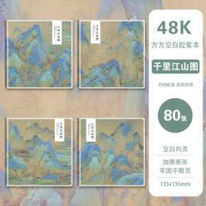 正方形の厚みのある白紙の本 - 千マイルの川と山々の絵