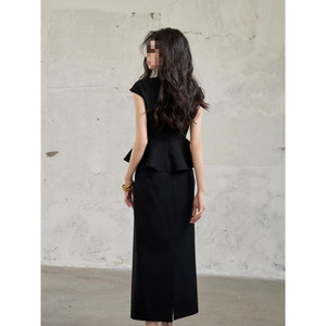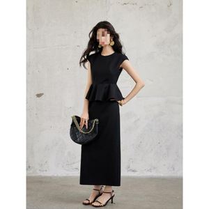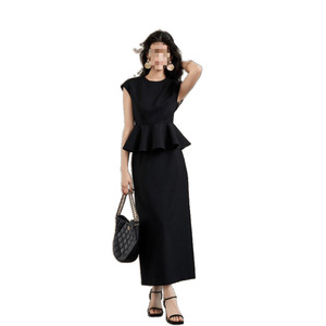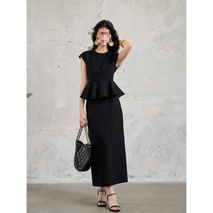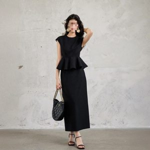 D6X フレンチヘップバーンスタイルファッションスーツ女性のための 2025 夏の新しいウエストノースリーブトップとスカート 2