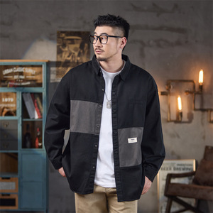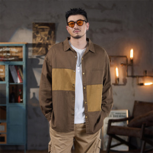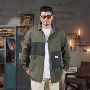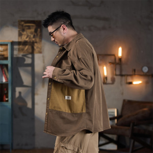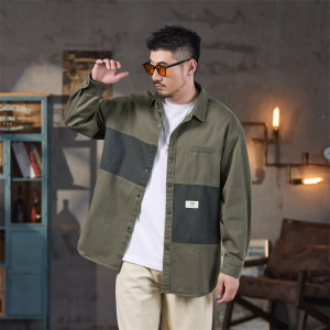 重磅水洗美式复古休闲长袖衬衫男士春秋季潮牌宽松型工装外套衬衫