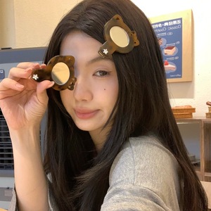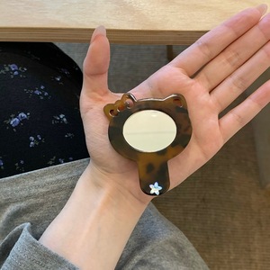 かわいいKTミラーヘアピン!ヒョウ柄リボン猫ヘアピンカモノハシクリップポータブル化粧鏡アクセサリー