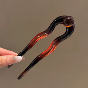 18#コーヒービーズU字ヘアピン 長さ約13cm