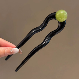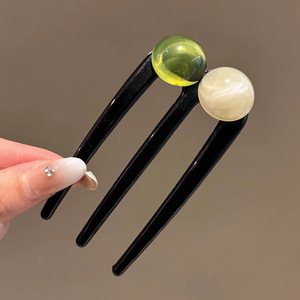 16#グリーンビーズU字ヘアピン 長さ約13cm