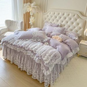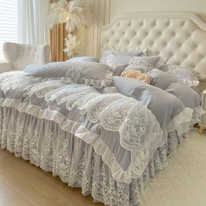 韩版公主风床上四件套蕾丝花边被套被罩四季通用床单床裙款4件套