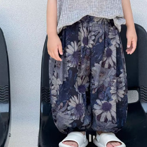 子供の香港スタイルの花柄パンツ防蚊パンツ夏薄い子供のズボンブルマー赤ちゃんルーズパンツ