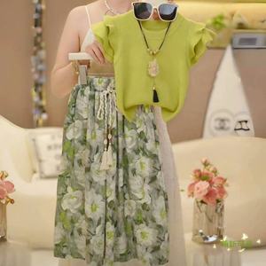 女児服2025年流行ラウンドネックベスト袖花柄長ズボンセットおしゃれツーピースセットトレンド爽やか花柄