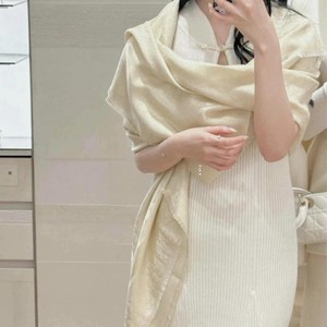 140cm大方巾老花字母桑蚕丝混纺羊毛2025时尚字母白月光围巾D披肩