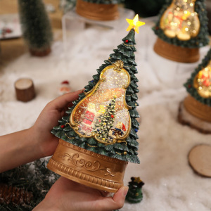 絶妙な発光水充填雪クリスマスツリーオルゴールインテリアサンタクロースデスクトップオーナメント装飾クリスマスギフト