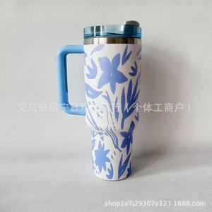 40 オンスアイスカップ 304 ステンレス鋼断熱カップ大容量ハンドルカップ吸引チューブ付き家庭用アウトドアスポーツウォーターカップ