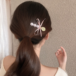 韓国の甘いチューリップパールリボンヘアピンガールサイドクリップリボン前髪ヘアピンカモノハシクリップ