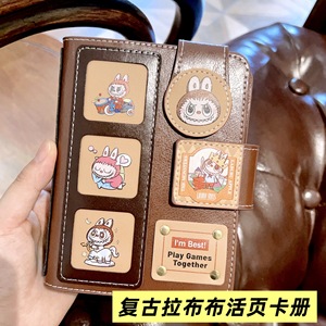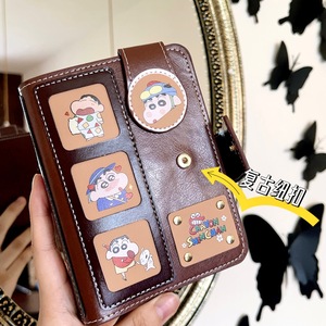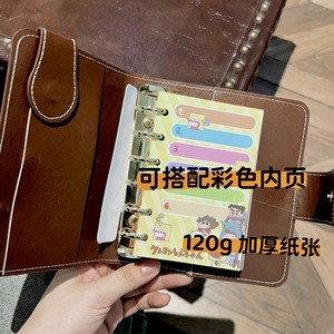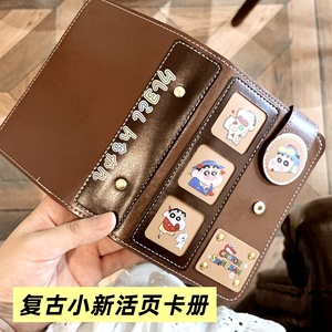 レトロクレヨンしんちゃん a7 取り外し可能な磁気バックルルーズリーフブックフルカラーページカードブックレザーポータブルノートブックカラーページブック