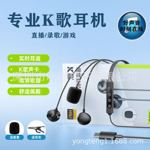 Yongteng の人気の Type-C サウンドカード マイクで歌を録音 リアルタイム リターン ライブ ストリーミング 歌うヘッドセット カラオケ 有線ヘッドフォン