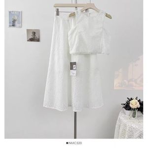フレンチレトロ中空かぎ針編みデザインスーツ女性の夏のノースリーブベストトップハイウエスト弾性スカート