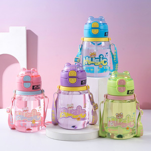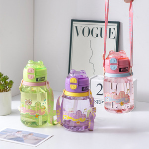 翊同新款儿童吸管杯弹跳盖可斜跨提绳塑料杯幼儿园小学生喝水杯子