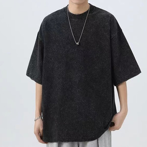 300克重磅纯棉水洗做旧短袖t恤美式复古纯棉男女款光版衣定印logo