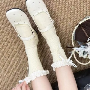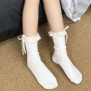 春夏潮韩系女学生白色蕾丝花边咖色可爱袜蝴蝶结小腿袜中筒堆堆袜