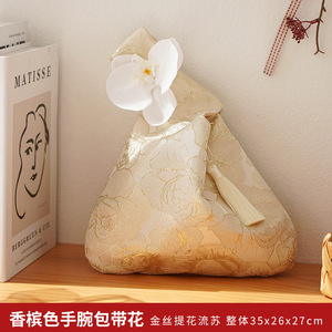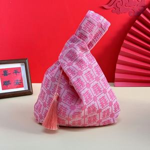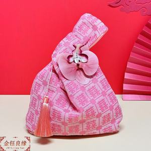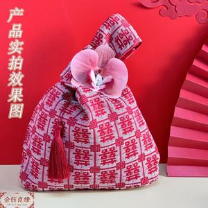 金糸織りフリンジ付き新中式ギフトリストバッグ、結婚式や祝祭用ギフトボックス、新作風呂敷ハンドバッグ