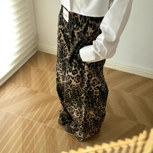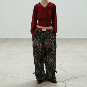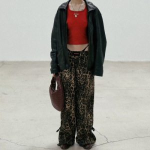 韓国 BADBLOOD ヒョウ柄アメリカンレトロホットガールルーズカジュアルパンツ刺繍ジャズストリートダンスワイドレッグパンツ女性用