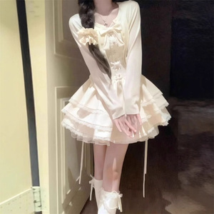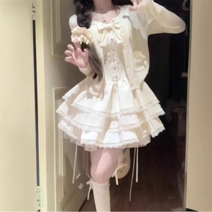 小柄な人向けの夏の純粋な欲望の高級サスペンダーケーキドレス+アプリコットカーディガン日焼け止め2点セット