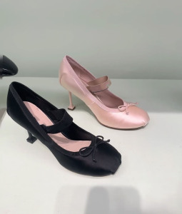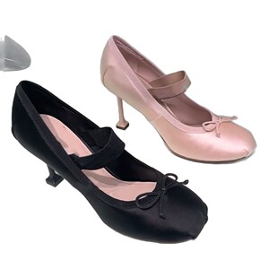 MIU同款芭蕾舞单鞋2025年春秋新款圆头玛丽珍蝴蝶结高跟鞋女细跟