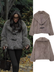 越境ECサイトの女性用厚手ラムウールコート、冬の新作ファー付きコート
