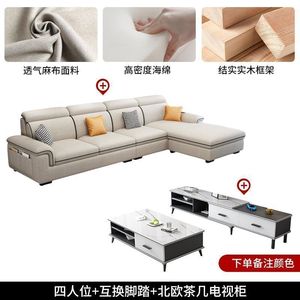 北欧スタイルのファブリックソファリビングルームモダンシンプルライト高級テクノロジーファブリック長椅子大小ソファ組み合わせ猫スクラッチ
