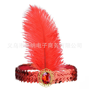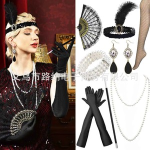 1920s女士套装八件套古典蕾丝羽毛宴会舞会套装旗袍走秀头饰装扮