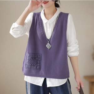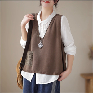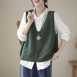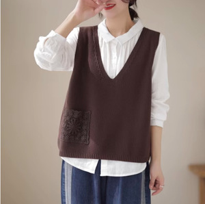 春秋装韩系V领棉线针织马甲背心女钩花套头复古休闲百搭叠穿坎肩