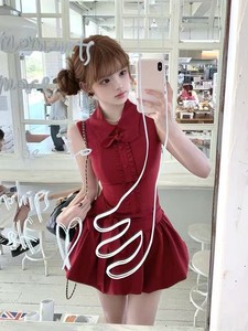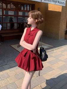 甘くて美しい、高級感のある赤いシャツのつぼみドレス、小柄な女性のウエスト痩身ショートスカート、夏