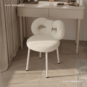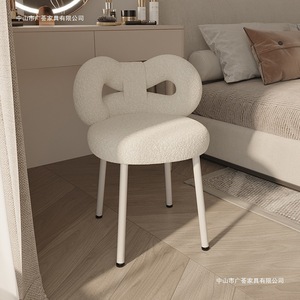 奶油风设计师款化妆椅现代简约女生卧室蝴蝶结羊羔绒梳妆台凳椅子