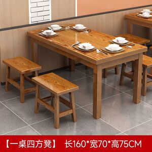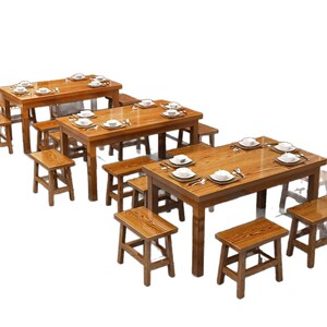 面馆桌椅饭店小吃店餐桌椅餐桌组合实木餐馆食堂桌子餐厅烧烤碳化