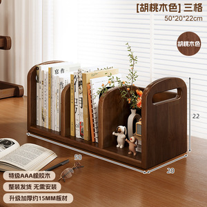 無垢材デスクトップ本棚収納ラックデスク収納ラックウォールナットカラー寮収納ラック子供用テーブル小さな本棚
