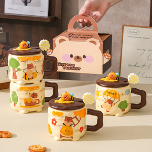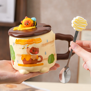 かわいい見栄えの良い蜂クマセラミックカップ蓋付きホームオフィスカップルウォーターカップクリエイティブギフトマグカップ