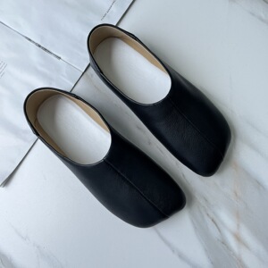 福利M*M6无标休闲全真皮踩跟两穿歪头女鞋平底单鞋一脚蹬乐福鞋女