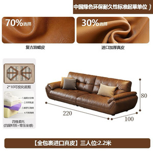 フラッグシップバージョン: 3 人用: 2.2m - [輸入された最上層本革の接触面 + 2*10 の目に見える無垢材フレーム]