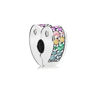 潘家多拉925纯银爱心彩色持续的爱锆石固定扣串珠DIY配件