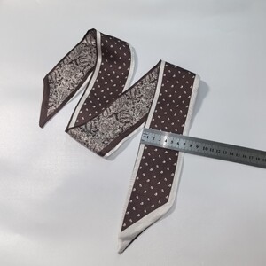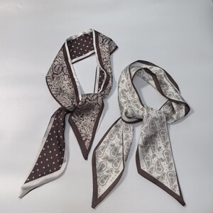 フレンチレトロなカシューフラワープリントシルクスカーフ、多用途シャツ、小さなスカーフ、装飾的な長いヘアタイ、バッグリボン