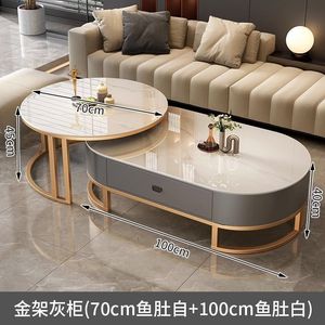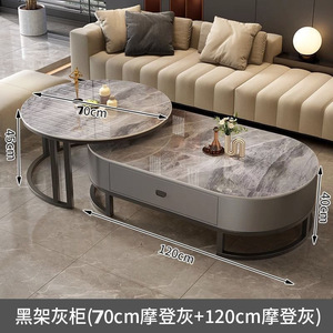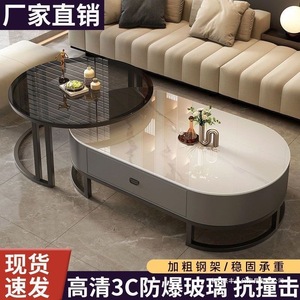 岩板茶几客厅家用轻奢现代新款简约小户型椭圆茶几大理石意式组合