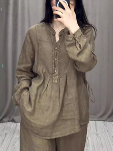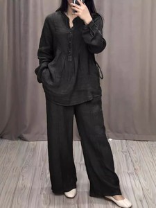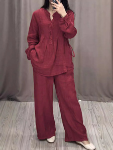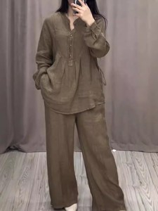 2025 ヨーロッパとアメリカの独立したステーション秋の新ファッション快適な綿とリネンの長袖ハーフカーディガンカジュアルプリーツワイドレッグパンツスーツ